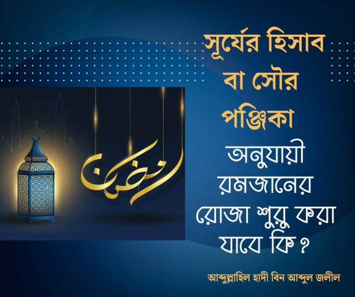 প্রশ্ন: সূর্যের হিসাব বা সৌর পঞ্জিকা অনুযায়ী রমজানের রোজা শুরু করা যাবে কি?