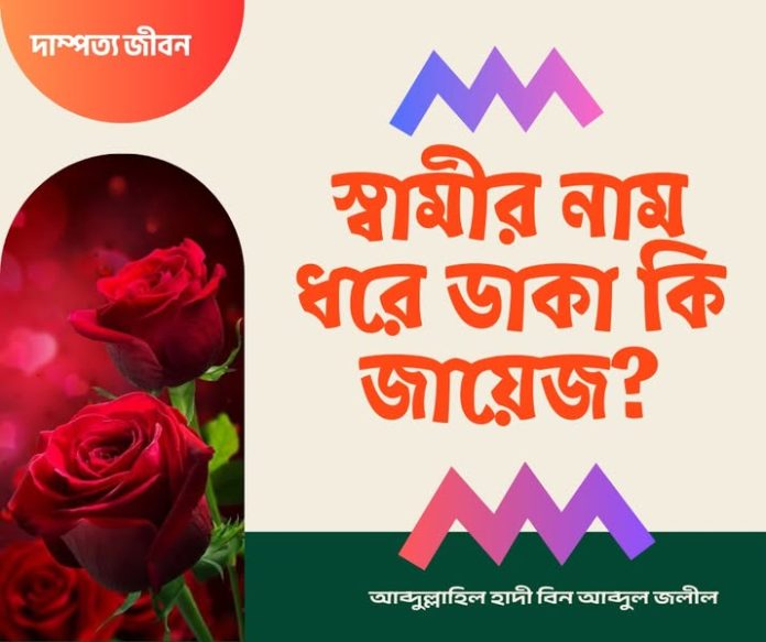 অবশ্য স্বামী যদি এতে মনে কষ্ট না পায় বা নিজের সম্মানহানি মনে না করে তাহলে নাম ধরে ডাকায় কোন সমস্যা নেই ইনশাআল্লাহ।